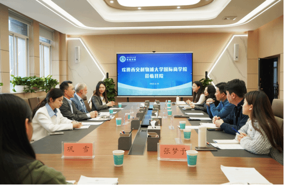 党委副书记王兆旭、院长助理白洁、各年级辅导员以及学工秘书与西交利物浦大学国际商学院来访人员进行交流研讨。