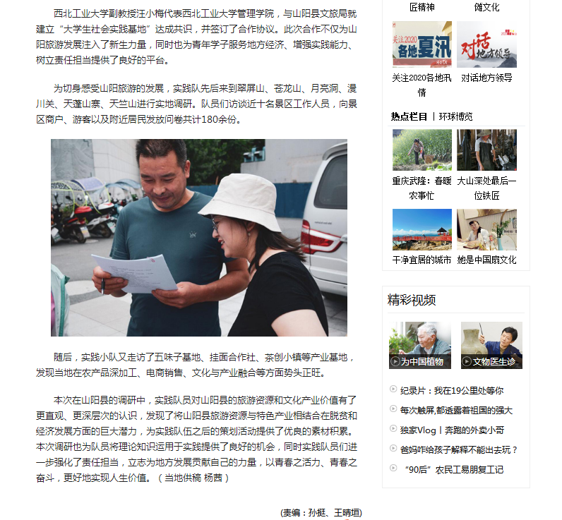 9月7日,人民网陕西频道,以《三下乡|磁力片 暑期实践队开展旅游资源实地调研》为题,报道了磁力片 “助力山阳”实践队,暑期赴商洛市山阳县进行山阳全域旅游资源实地调研活动。