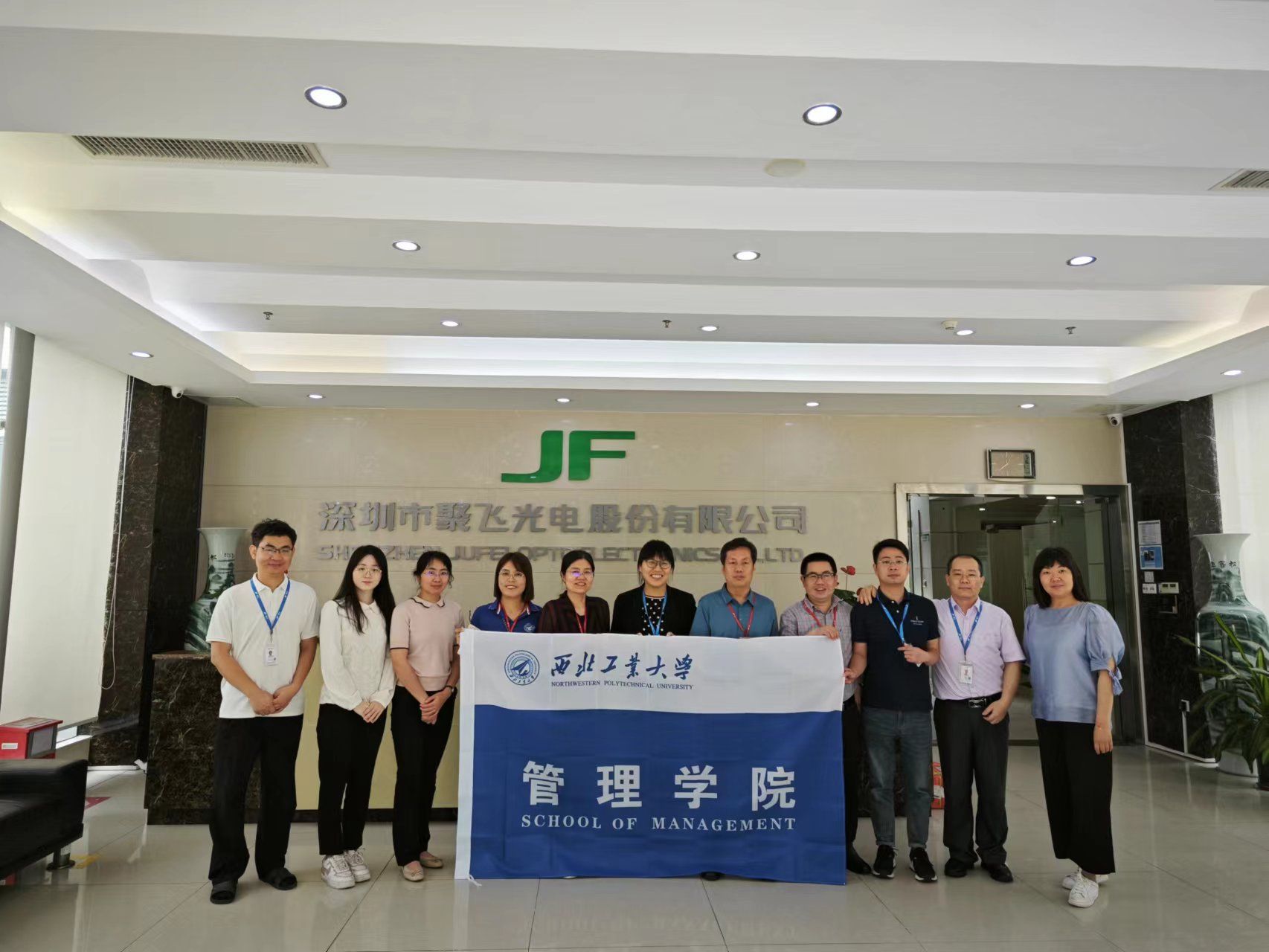 17日上午,专业学位一行前往深圳市聚飞光电股份有限公司调研。参观了实验室、工厂车间后,一行与聚飞光电董事长兼总经理邢美正、人力资源中心总监黄明、生产中心副总监王强、仓储部主管陈红梅、车用车间主管李欢、SMT设备主管黄路华就校企合作、实践基地等进行了交流,并对未来更多样的产教融合形式进行了深入的探讨。
