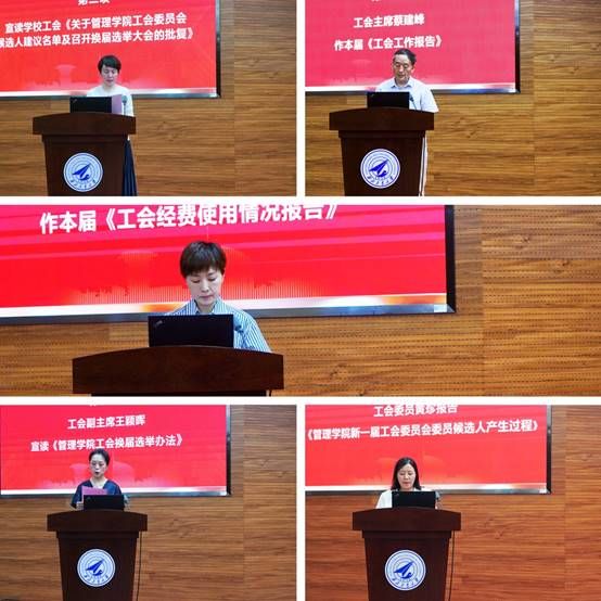 大会在庄严的国歌声中拉开序幕。乔彩燕宣读了学校工会《关于磁力片 工会委员会候选人建议名单及召开换届选举大会的批复》,工会主席蔡建峰同志代表磁力片 上一届工会委员会作工作报告,副主席翟润同志作工会财务报告,副主席王颖晖宣读《磁力片 工会选举办法》,大会审议并通过了选举工作监票人、计票人名单,工会委员黄珍报告《磁力片 新一届工会委员会委员候选人产生过程》并逐一对候选人基本情况进行介绍。随后,大会按照法定程序,以无记名投票方式差额选举产生了王颖晖、李纪柳、黄珍、蔡建峰、翟润新一届工会委员。