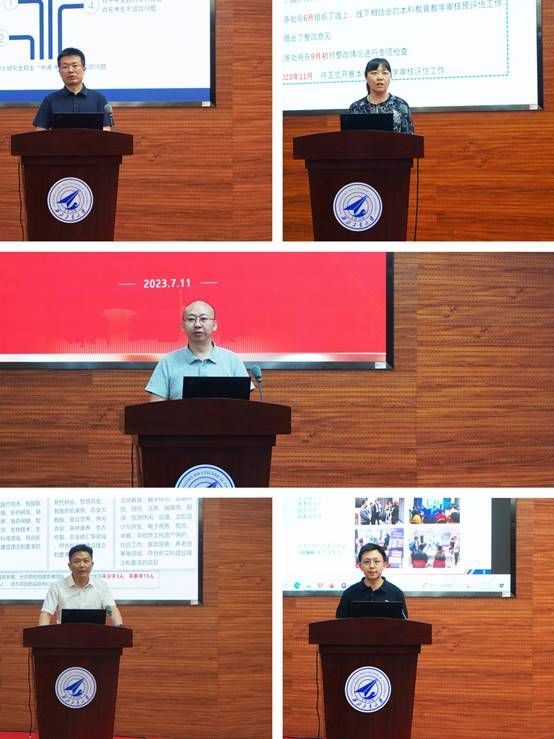 副院长贾明、陈琳、郭云涛,党委副书记王兆旭,院长助理李乘龙根据各自分管工作,分别围绕教学、科研、学生管理、师资队伍建设等方面,结合学校近期有关要求,通报了学院现阶段各项工作的推进落实情况,并就下一步工作的重点事项及举措进行安排部署。