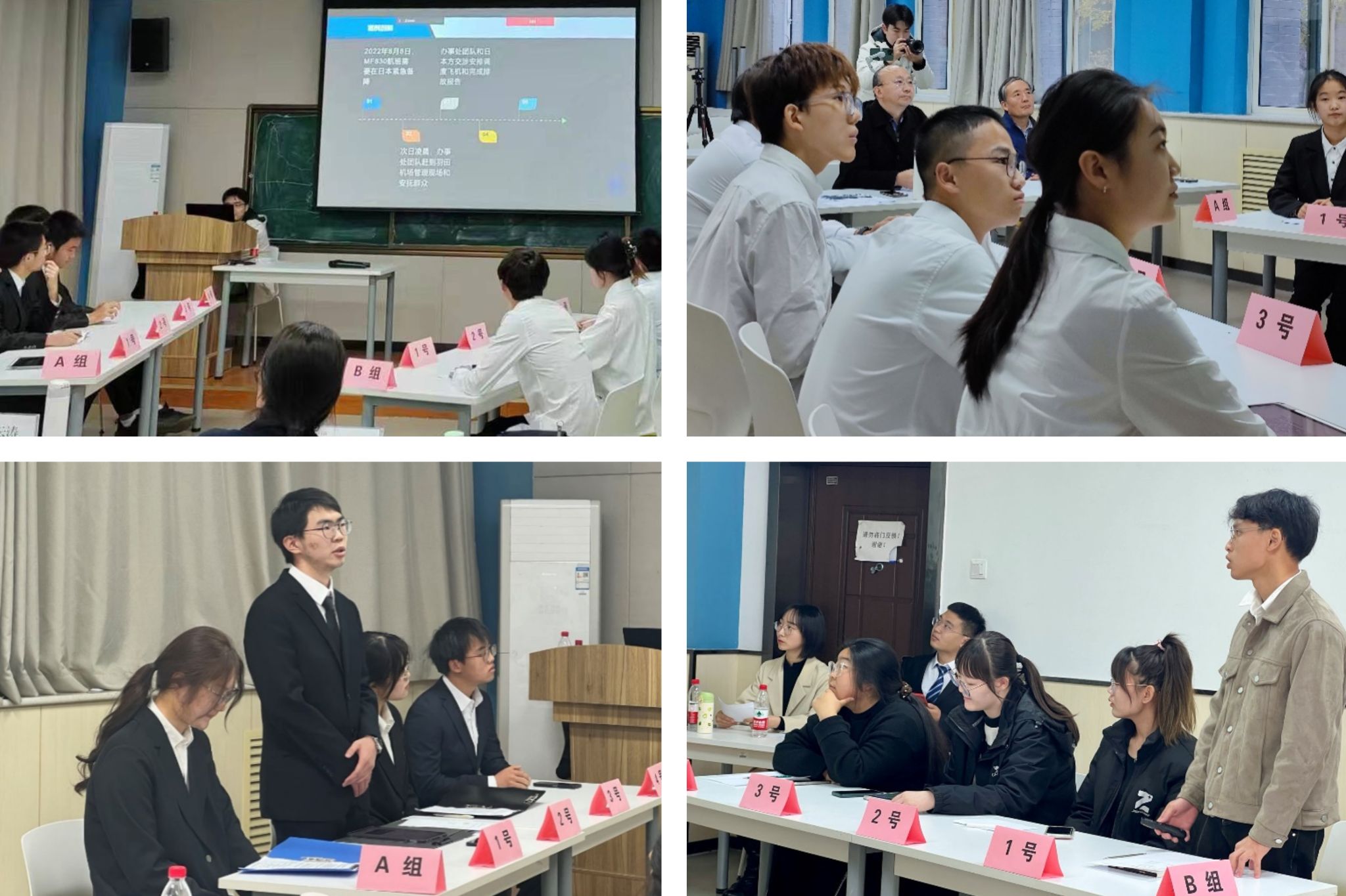 210教室正式开始。各参赛队伍按抽签顺序依次出场,进行了案例分析阐述。在PK环节,各队亦使出浑身解数,相互质询,精彩不断。