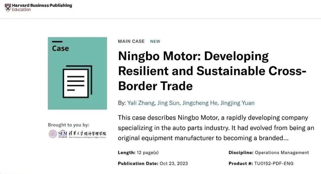 张亚莉教授团队撰写的英文教学案例《Ningbo Motor: Developing Resilient and Sustainable Cross-Border Trade》正式被哈佛大学商学院出版教学资源平台(即“哈佛案例库”)收录,并同步在清华大学经济磁力片