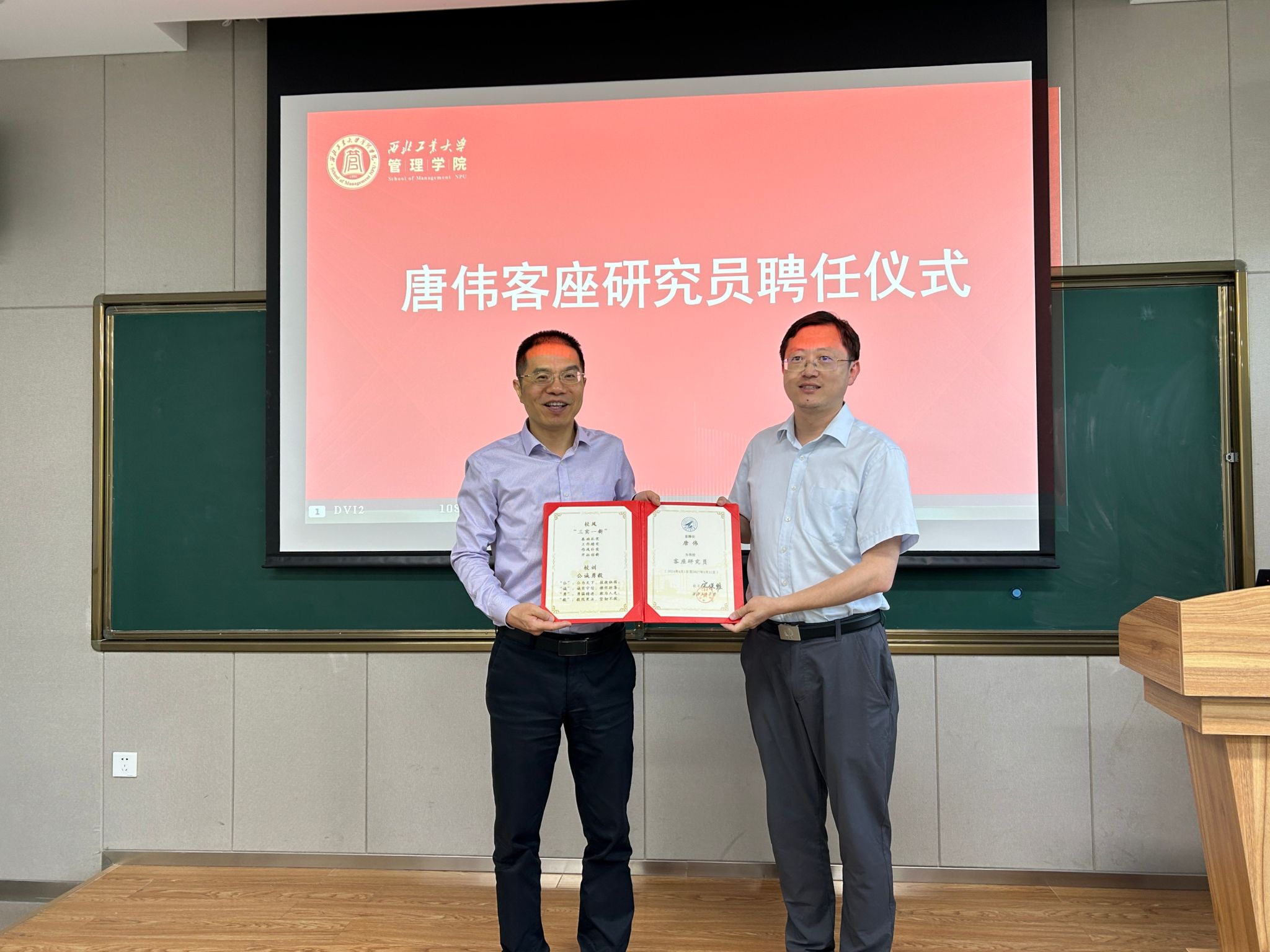 在讲座开始之前,车阿大对唐伟的到来表示热烈欢迎,对其个人经历和学术成就进行简要介绍,并为他颁发客座研究员聘任证书。车阿大表示,唐伟已成为学院的一份子,希望未来在项目申请、科学研究等方面能够助推学院高质量发展。唐伟表示,受聘为磁力片 客座研究员既是对自身的肯定也是前行的动力,将积极促进校企合作,高质量完成客座研究员的目标任务。