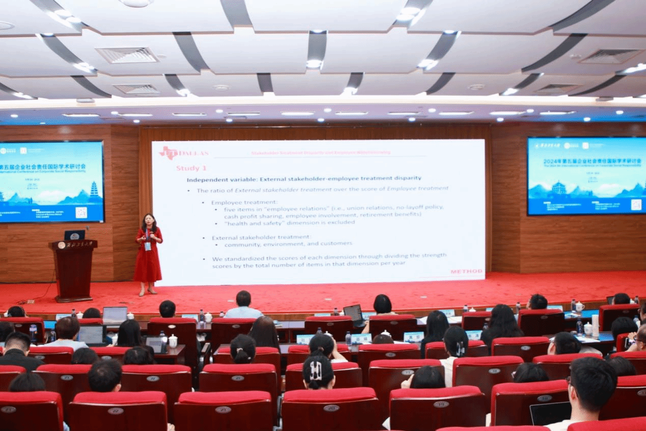 来自新加坡管理大学李光前商学院的Prof. Heli Wang分享了题为《The Spillover Effect of Mandatory CSR Regulations on Corporate Social Irresponsibility》的研究。来自德克萨斯大学达拉斯分校的Prof. Cuili Qian分享了题为《Stakeholder Treatment Disparity and Employee Whistleblowing: A Multi-Stakeholder Framework》的研究。