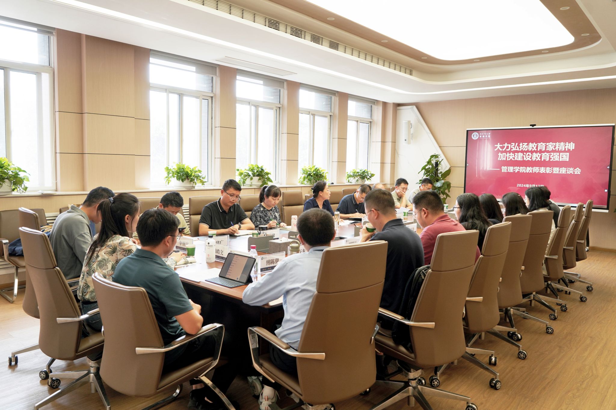 本科生最满意教师孟艳玲老师、本科教学卓越新秀董雪艳老师、优秀青年教师(吴亚军奖)特等奖张莹老师、优秀班主任周琛淏老师依次发言,几位近期受学校表彰的教师代表围绕会议主题,结合自己的教学、科研和学习经历,讲述了对教育事业的热爱与追求,并就从教经历和心得收获等方面分享体会,为校、院事业发展和新时代教师队伍建设建言献策。