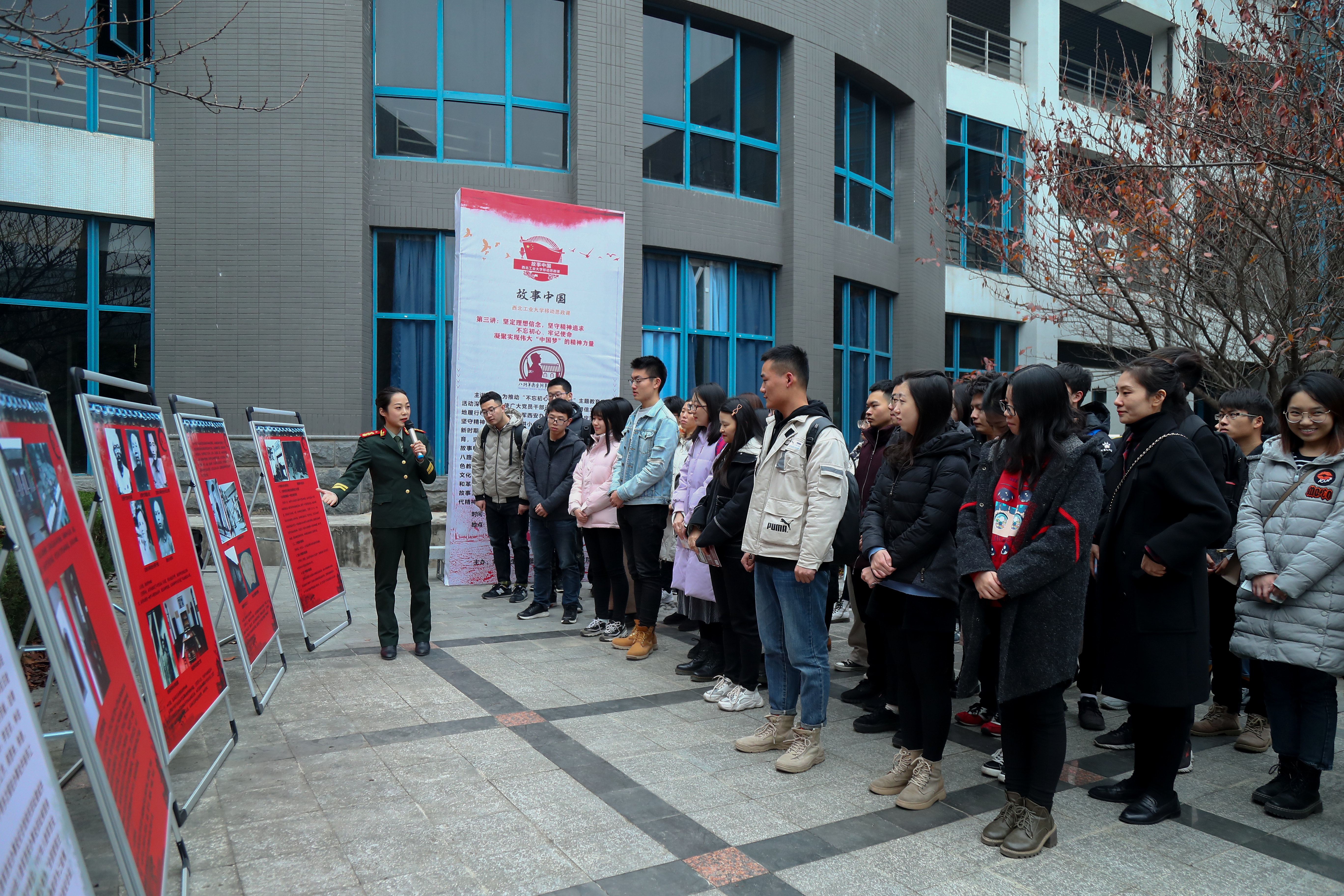 本次移动思政课特邀八路军西安办事处纪念馆“理想·信念”宣讲团以“坚定理想信念,坚守精神追求,不忘初心、牢记使命,凝聚实现伟大中国梦的精神力量”为主题,从“红色的桥梁,永恒的纪念”、“永远的怀念”、“希望的火种在这里点燃”、“五星红旗颂”和“团结就是力量”等五个篇章,用艺术展演的形式为广大学生带来了一堂生动深刻的党史教育课和感恩教育课。