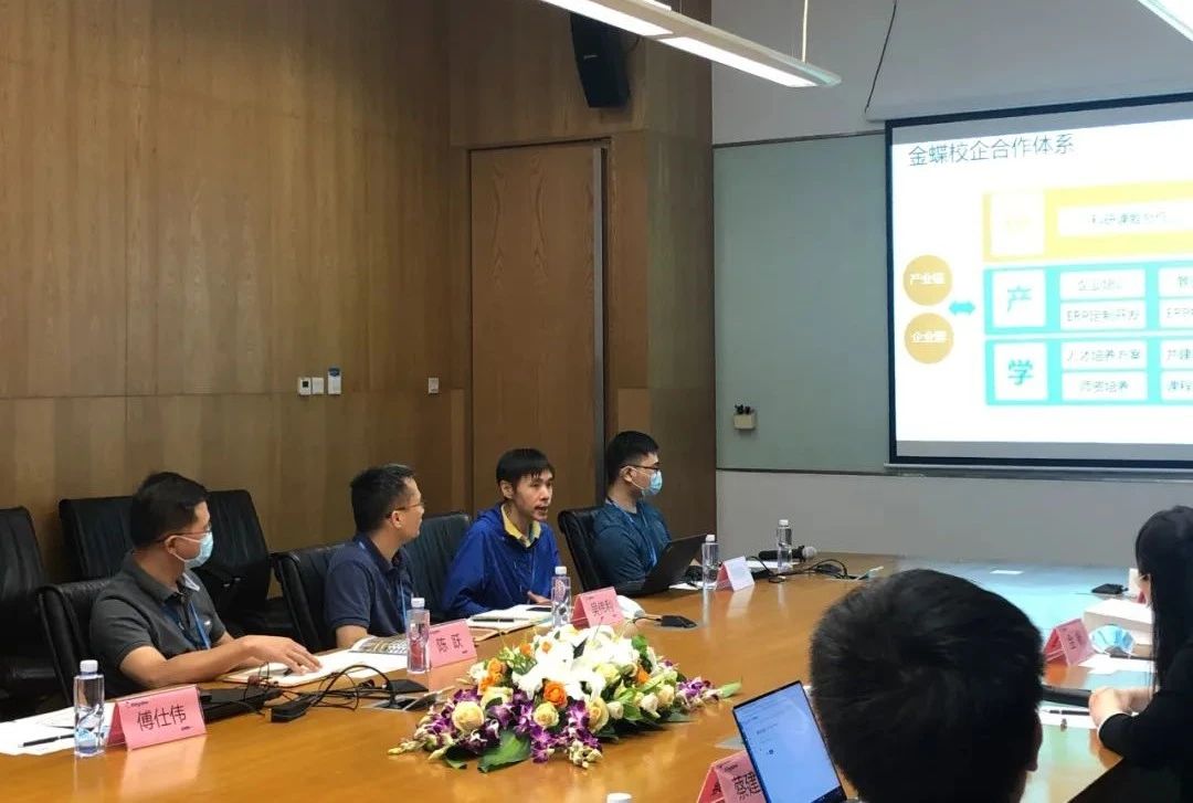 参观结束后双方移步会议室。金蝶精一执行总裁陈跃首先对学院老师们的到来表示诚挚欢迎,对公司基本情况进行介绍,并表示金蝶在管理软件、管理实践、大数据、企业云服务信息技术领域具有一定的产业优势,能够与高校共同实践产教融合、推动专业人才培养模式创新,实现联合发展、共创共赢的发展目标。