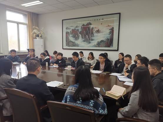 于长安校区学院231会议室召开深入学习贯彻党的十九届五中全会精神专题座谈会,出席本次会议的有学院党委书记乔彩燕及学院副院长贾明。