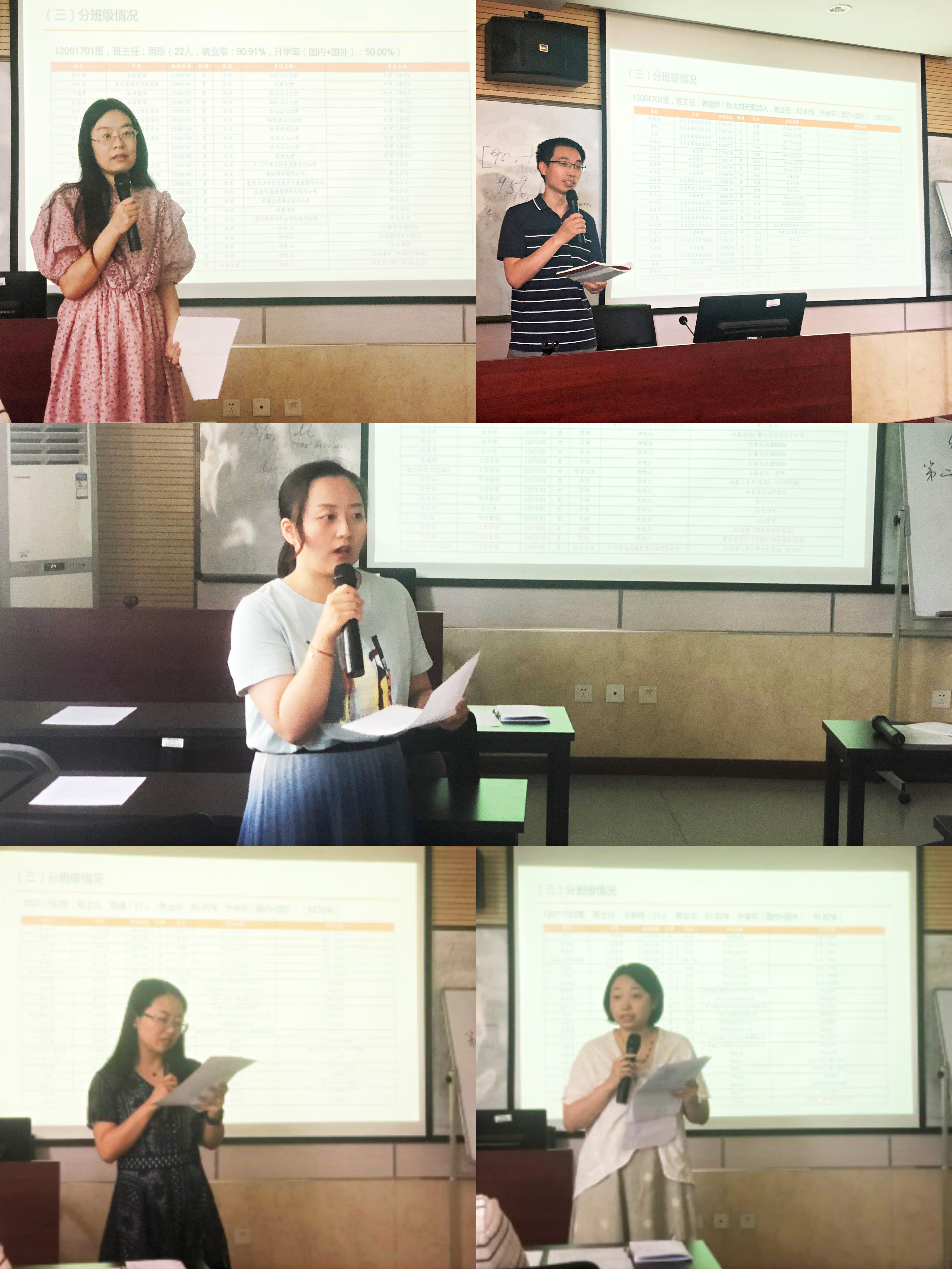 其他年级班主任分别从学生的思想状况、学业发展、专业认知、主要存在问题和进一步工作计划等方面,对各班的整体情况进行了详细介绍。