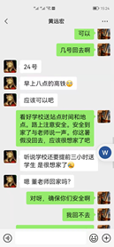 班主任、导师和每位离校学生家长确定学生行程,悉心叮嘱同学们离校安排,关注每一位平安到家学生的信息。