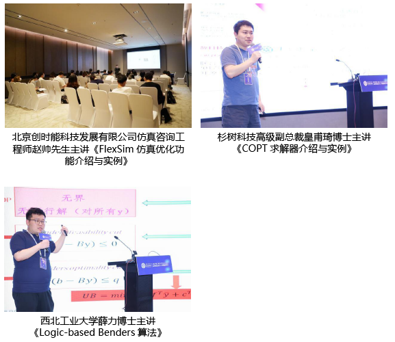 此外,本届大会还开设了《FlexSim仿真优化功能介绍与实例》、《COPT求解器介绍与实例》和《Logic-based Benders算法》训练营,供广大师生学习软件功能和优化算法。