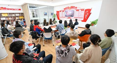 学院团委组织团员代表在会议室集中收看开幕会直播