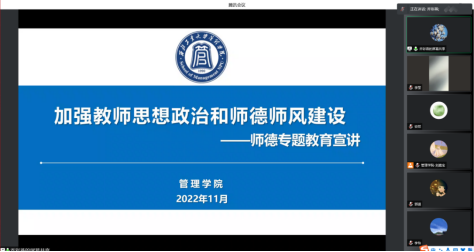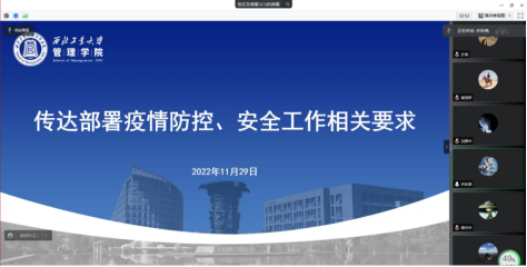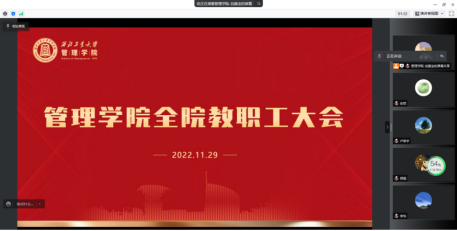 副院长郭云涛、党委副书记王兆旭、院长助理邵婧分别就学院专业学位学生培养及管理工作、学生教育管理及疫情防控工作、国际认证工作的具体情况进行了通报。