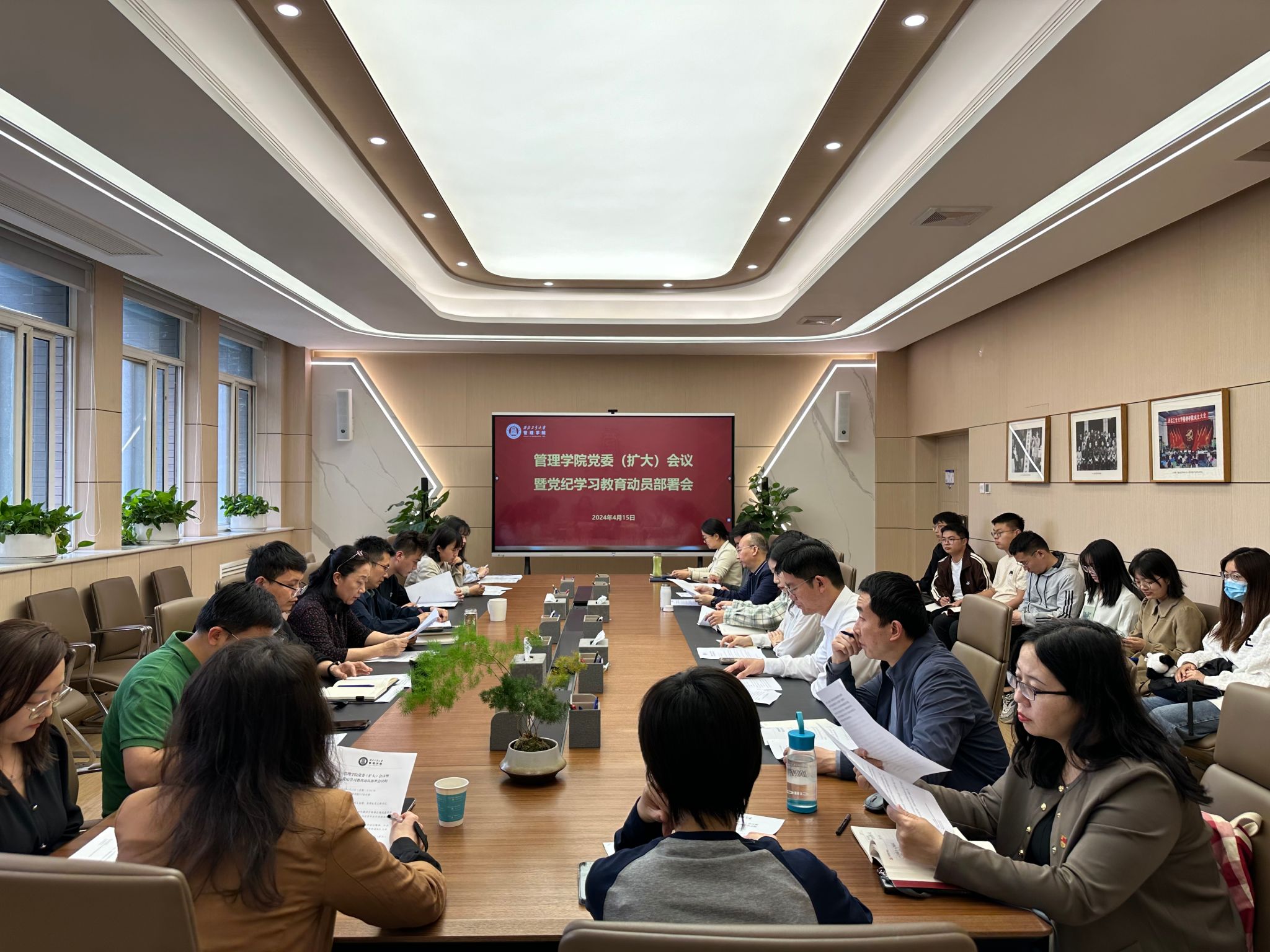 4月15日,磁力片 召开党委(扩大)会议暨党纪学习教育动员部署会。学院领导班子成员、全体师生党支部书记参加会议,围绕党纪学习教育、深化全面从严治党工作进行部署安排。会议由党委书记张爽主持。