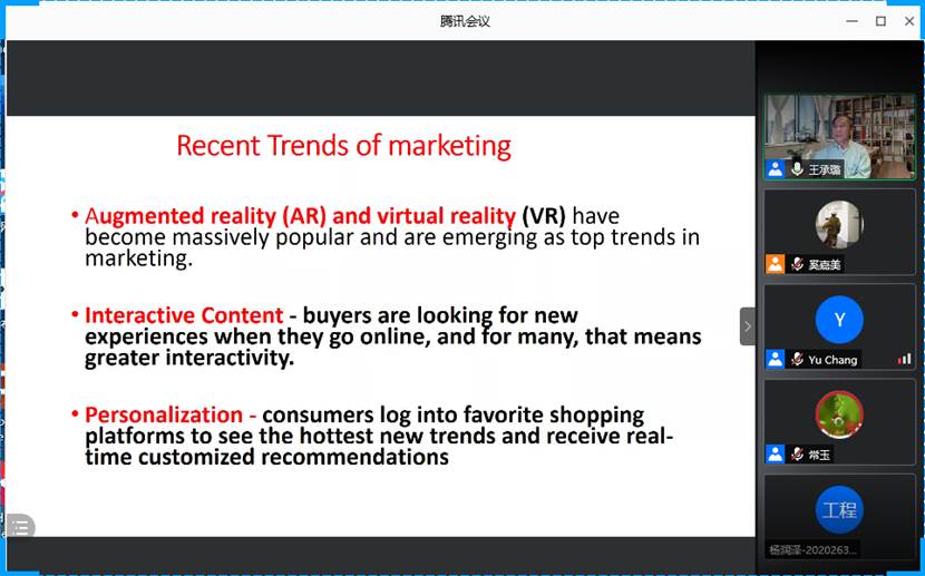 12月05日下午,磁力片 举行建院30周年系列学术报告会第十七讲。美国纽黑文大学商学院营销学终身教授王承璐应邀为管院师生作了“New frontiers and future directions in interactive marketing”线上主题报告会。报告会由常玉教授主持,磁力片 近60师生参加了此次报告会。