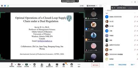 12月09日上午,磁力片 举行建院30周年系列学术报告会第二十二讲。加拿大温莎大学Odette商学院管理科学教授李武应邀为管院师生作了“Optimal Operations of a Closed-Loop Supply Chain under a Dual Regulation”线上主题报告会。报告会由朱煜明教授主持,磁力片 近50师生参加了此次报告会。