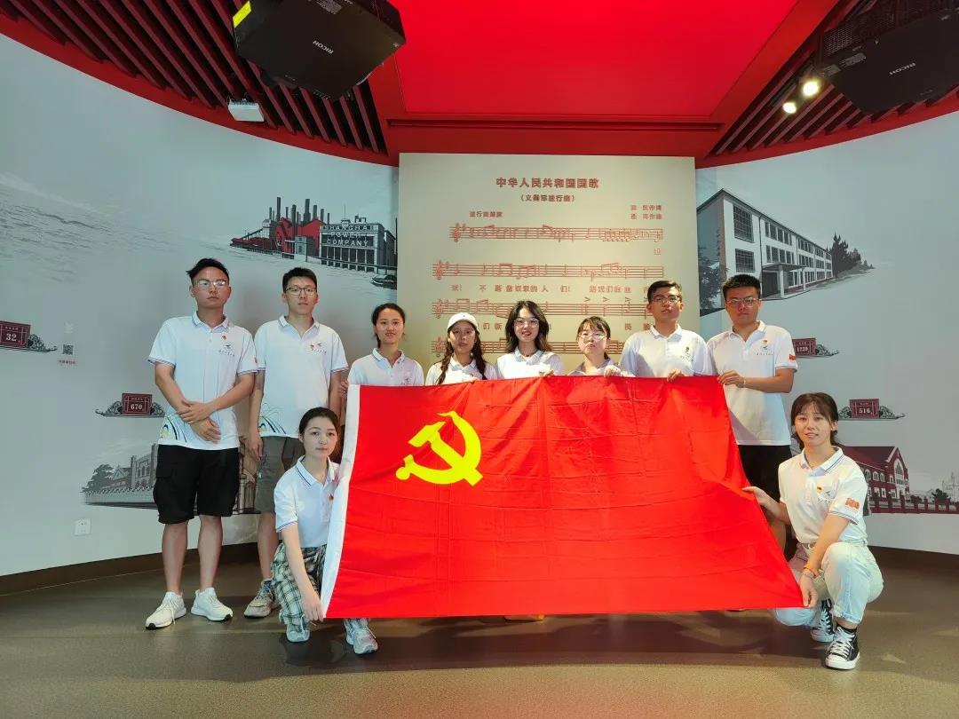 7月12日早晨,实践队奔赴国歌纪念馆,了解《义勇军进行曲》诞生的背景和影响以及被确定为国歌、国歌作者和国歌的故事,感受国歌的魅力,学习爱国主义精神。馆内,全体成员齐声高唱国歌,在庄重肃穆的歌声中,每一位同志都难掩激动之情。参观结束,实践队全体成员在党旗下重温了入党誓词。