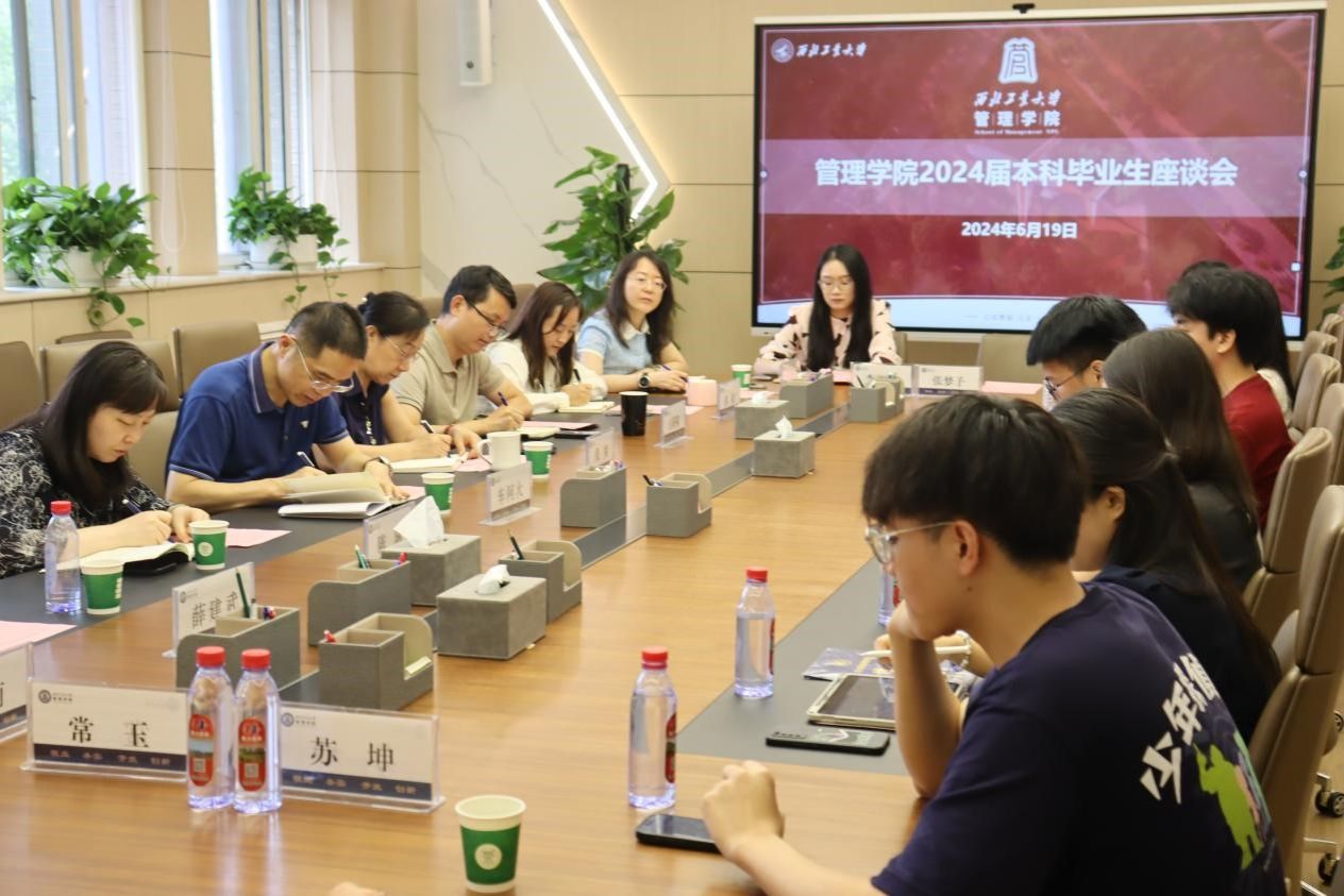 2024届本科生毕业座谈会在学院212会议室举行。学院院长车阿大、党委书记张爽、副院长陈琳、党委副书记王海啸、院长助理白洁、各系系主任、毕业年级辅导员、本科生教学秘书以及12名本科毕业生代表齐聚一堂,以座谈会见证成长与收获。会议由党委副书记王海啸主持。