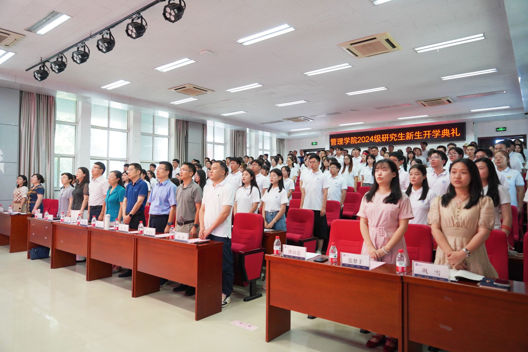 在长安校区举行2024级研究生开学典礼。院长车阿大、党委书记张爽、副院长贾明、党委副书记王海啸、六级职员白洁,管理科学与工程系主任张亚莉、市场营销系主任常玉、工商管理系系主任洪兆富、会计系主任苏坤,研究生辅导员、教学秘书及34名博士研究生、135名全日制硕士研究生新生参加了典礼。典礼由硕士研究生辅导员龚汨嘉主持。