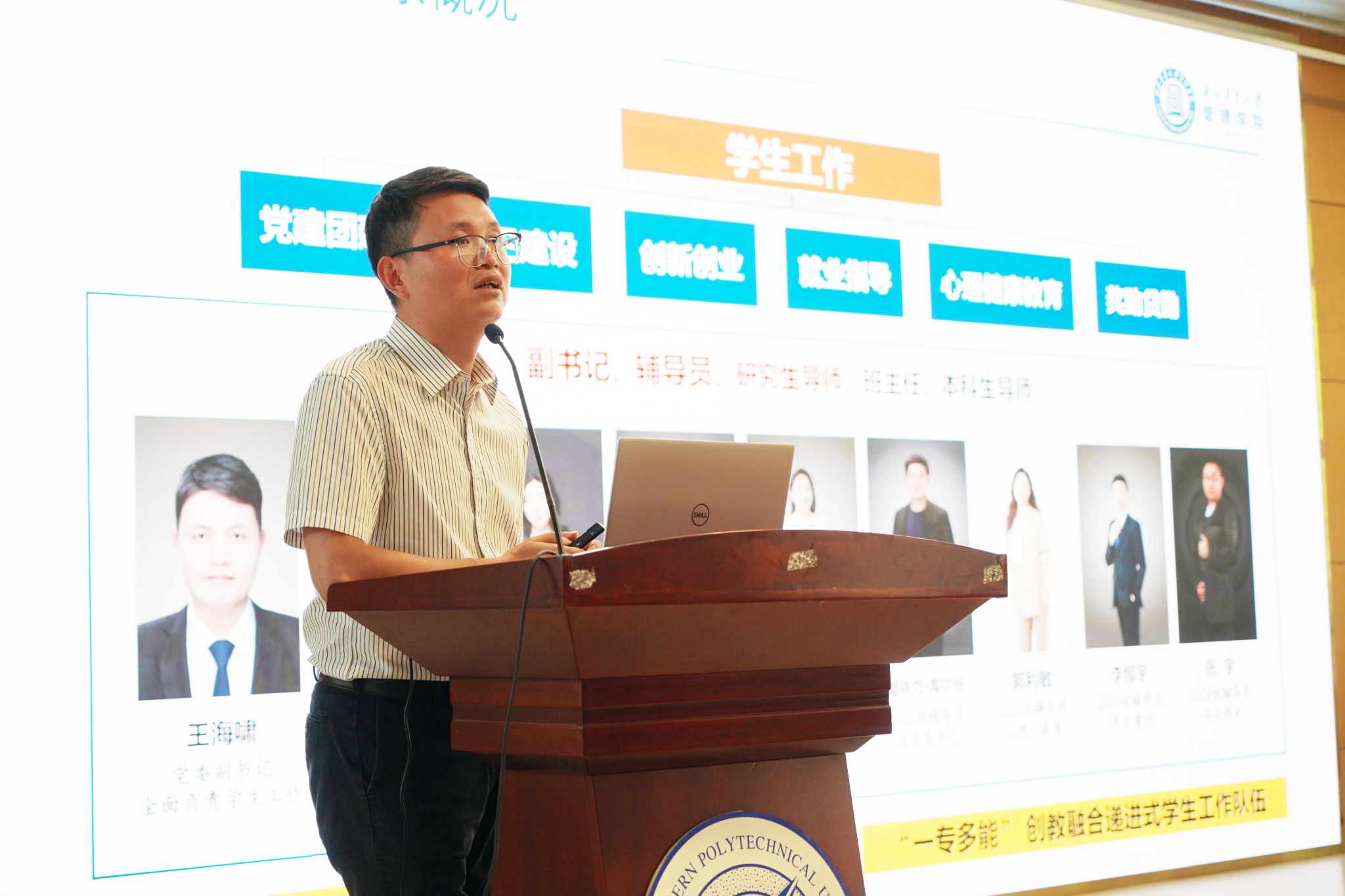 王海啸系统介绍了学院的学生工作情况,对党建团建、创新创业、奖助体系、就业实习等工作进行了细致讲解,就同学们普遍关注的问题进行了重点说明。他表示,学院将全力为研究生提供丰富的资源和有力的保障,助力大家在研究生阶段实现全面发展。