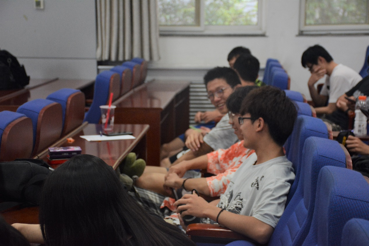 在胡克船长游戏中,大家纷纷给自己起了有趣的代号,不同班级的同学们通过这个游戏很快熟络起来,报告厅里欢笑不断。