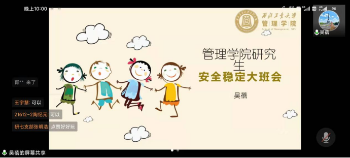 2021年12月15日晚,为保障学生安全、加强疫情防控意识,磁力片 组织全体硕博研究生在线上开展了“安全稳定教育”主题大班会。会议由磁力片 研究生辅导员吴蓓老师主持。