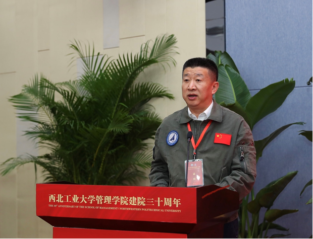 Then, Yin Jianfeng,a 1990 grade alumni,who is now Deputy Chief Engineer, Researcher and Super-Class Pilot of China Flight Test Research Institute, made a speech on behalf of alumni of the School.Yin Jianfeng talked about his unforgettable moments in School of Management and also encouraged the current students to work hard and to become talent of China.