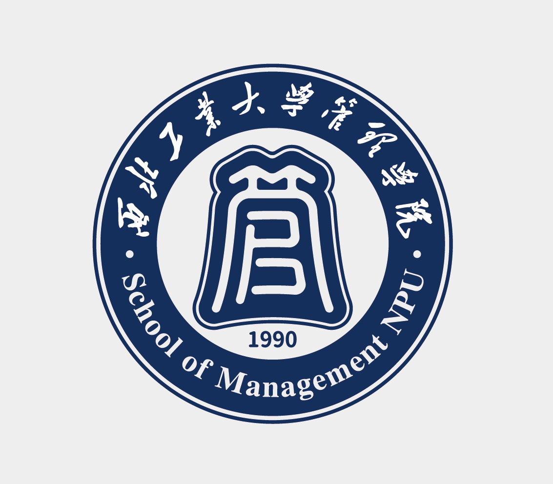LOGO创意来自篆体的“管”字,结合了英文,传承中华文化“管理学”精髓的同时,体现与国际接轨的开放与包容。色彩传承自“西工大蓝”,突显大气、稳重的学院特色。造型为中国传统的“钟”,表示“时间管理”在管理学的重要性,及其“稳如钟”的稳重、平衡之意。管字上方的“竹字头”为携手并进的两个“人”,寓意“团结,包容”,表达了管理学“以人为本”的理念。下方的“官”字巧妙地融入了磁力片 (Northwestern Polytechnical University)的英文缩写NPU。