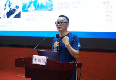 学生代表简要分享了攀登珠峰的艰难历程,从准备训练到登顶的每一个挑战,都充满了对攀登事业的热爱和执着。何静简要分享了无氧登顶珠峰的经历,讲述了自己在极端环境下如何保持冷静、如何克服身体和心理的极限。