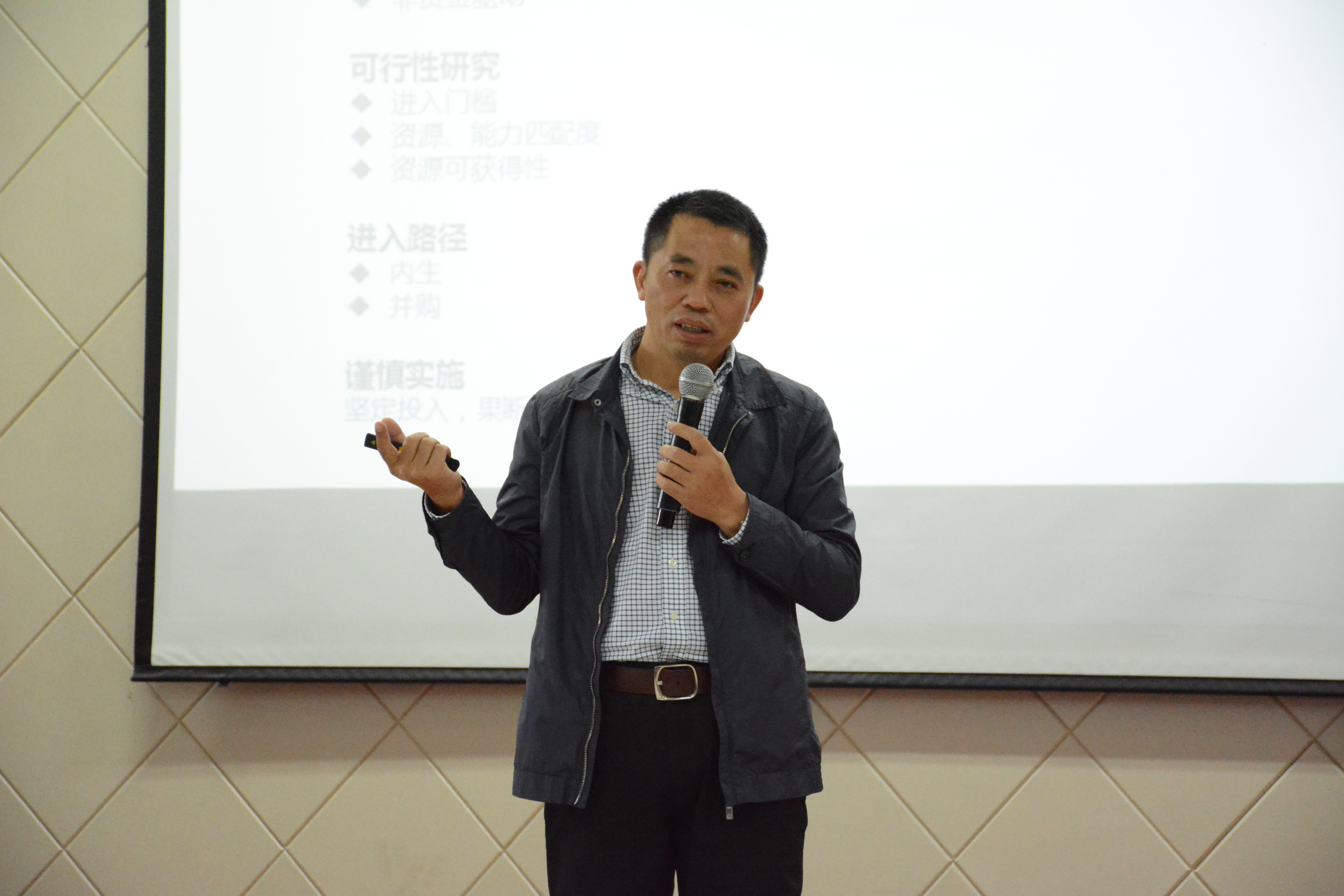 创业之路艰辛,转型升级更是不易。面对企业转型发展,贾清校友认为好的企业家应当以清晰的思维对企业及行业进行谨慎分析。做好行业与进入路径的选择、坚定对目标的投入、谨慎实施决策、果断止损。接着他结合自身企业转型实例,以“有线电视”转型“物联网”为案更进一步地阐述自己的观点,贾清校友独到的讲解使得在场师生对企业转型方面的内容有了更加清晰的认识。