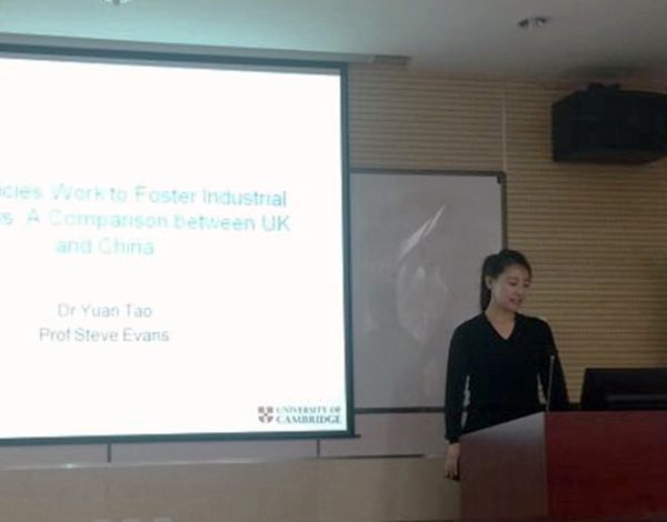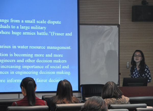 的基本情况、近年来取得的成就及未来发展思路。三位学者分别就《Cross-border Water Resources Conflict Resolution》、《产业共生及其扶持政策的中英对比研究》、《贝叶斯统计学习及在营销科学中的应用》等各自专业研究领域的研究成果做了精彩的报告并和与会人员进行了互动交流。