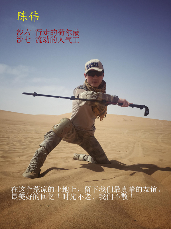 漫天风沙,烈日骄阳,三天负重穿越沙漠70公里,考验的不单单是参赛队员的体力,更是意志力与团队合作的默契。在艰苦环境下坚持信念,挑战自我,让亚沙赛成为一个重新认识自己的开始。全体队员在队长宋超的带领下,经历高温、低温、小雨、沙尘暴等恶劣气候,连续三天熬战,积极拼搏,虽憾失沙鸥奖杯,但西工大每一位勇士的足迹深深地印在了亚沙赛场上。