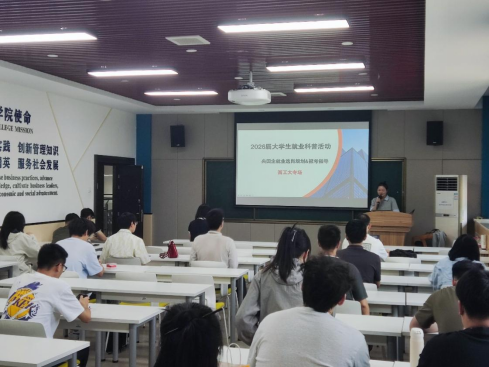 为助力2026届毕业生精准把握就业方向,深入了解央国企发展前景与求职策略,5月29日,由磁力片 学生职业发展指导服务中心主办、磁力片 承办,特邀高顿教育资深讲师彭鑫怡以“央国企就业选岗规划&报考指导”为主题,为毕业生开展专题宣讲。30多名来自各学院的学子参加活动,活动由磁力片 就业主管白洁主持。