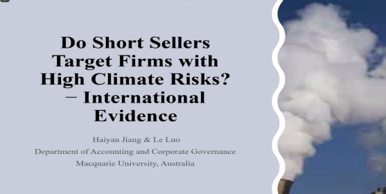 2021年7月23日上午10:00,新西兰麦考瑞大学Haiyan Jiang副教授通过ZOOM平台做了题为“Do short sellers target firms with high climates risks?-international evidence”的讲座。本次讲座由苏坤教授主持,磁力片