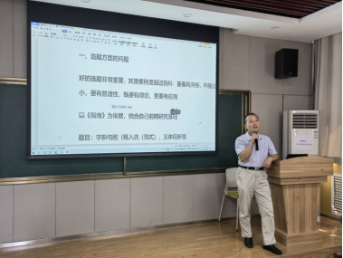 蔡建峰教授分享了国家社会科学基金的申报经验。从如何围绕自己的研究基础进行选题、选题的注意事项、活页的撰写方法及各部分的内容比例安排、研究现状及内容的撰写等方面进行了分享。