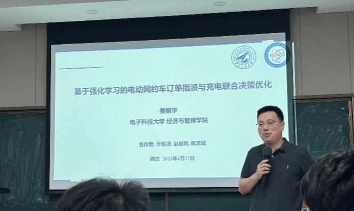 2023年4月27日下午,应磁力片 邀请,电子科技大学经济与磁力片 晏鹏宇教授在长安校区磁力片 作了题为《基于强化学习的电动网约车订单指派与充电联合决策优化》的学术报告。本次报告由张静文教授主持,磁力片 教师和研究生参加了报告会。