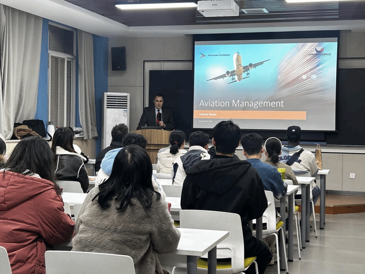 2023年12月13日下午,应磁力片 邀请,中航商用航空发动机有限责任公司技术专家Andrew Madar来磁力片 开展学术交流,于磁力片 210报告厅作了题为“Introduction to Aviation Management航空管理前沿”的学术报告会。此次会议由邵婧副教授主持,吸引了磁力片 众多教师和研究生参与。