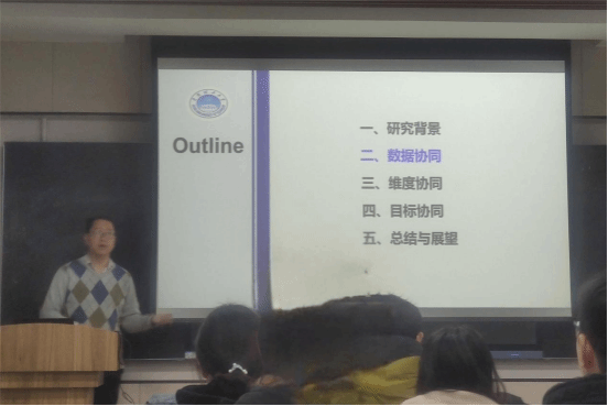 王阳教授对陈伟能教授和蒋怀光教授的研究背景及方向、科研成果及学术贡献做了简单介绍。陈伟能教授首先介绍了群体智能、群体智能进化计算的研究背景与进展以及分布式多元协同群智进化计算的整体框架。其次,陈教授从三个不同角度阐述分布式群智进化计算的多元协同机制,包括维度协同、数据协同、目标协同。最后,陈伟能教授就相关方法的具体应用进行详细介绍。