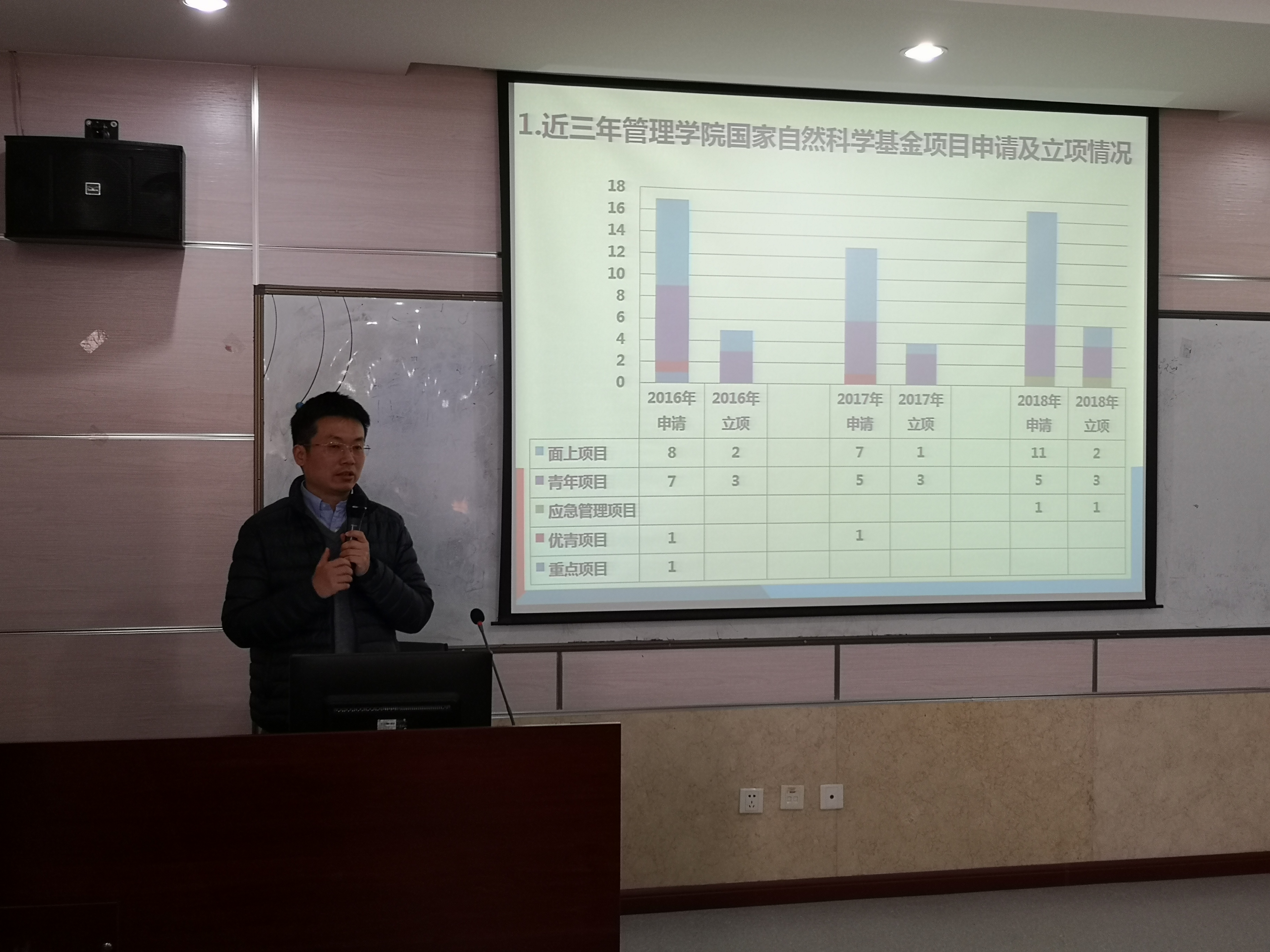 最后,车阿大院长做了动员讲话:近年来,学院狠抓科研,在全院教师的共同努力下,国家级基金项目立项数取得了大幅提高,极大的鼓舞了老师们申请基金的积极性。希望大家认识到国家基金项目的重要性,找准选题方向,精心准备,坚持不懈,力争2019年国家级基金立项数再创佳绩。