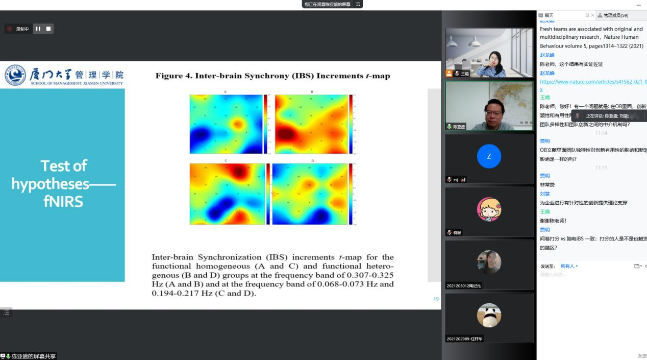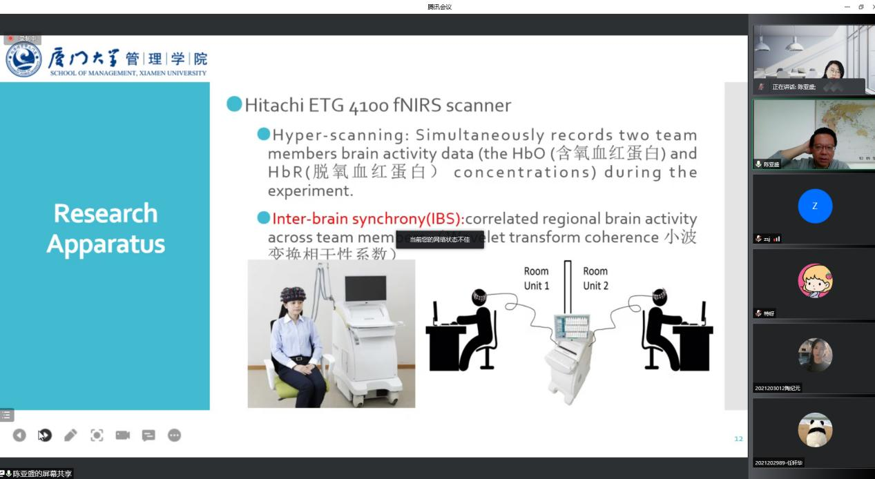 邀请,厦门大学陈亚盛教授作了题为“专业技能多样性对虚拟团队创造力的影响——一项基于功能性近红外超扫描的实验”的报告,报告会由磁力片