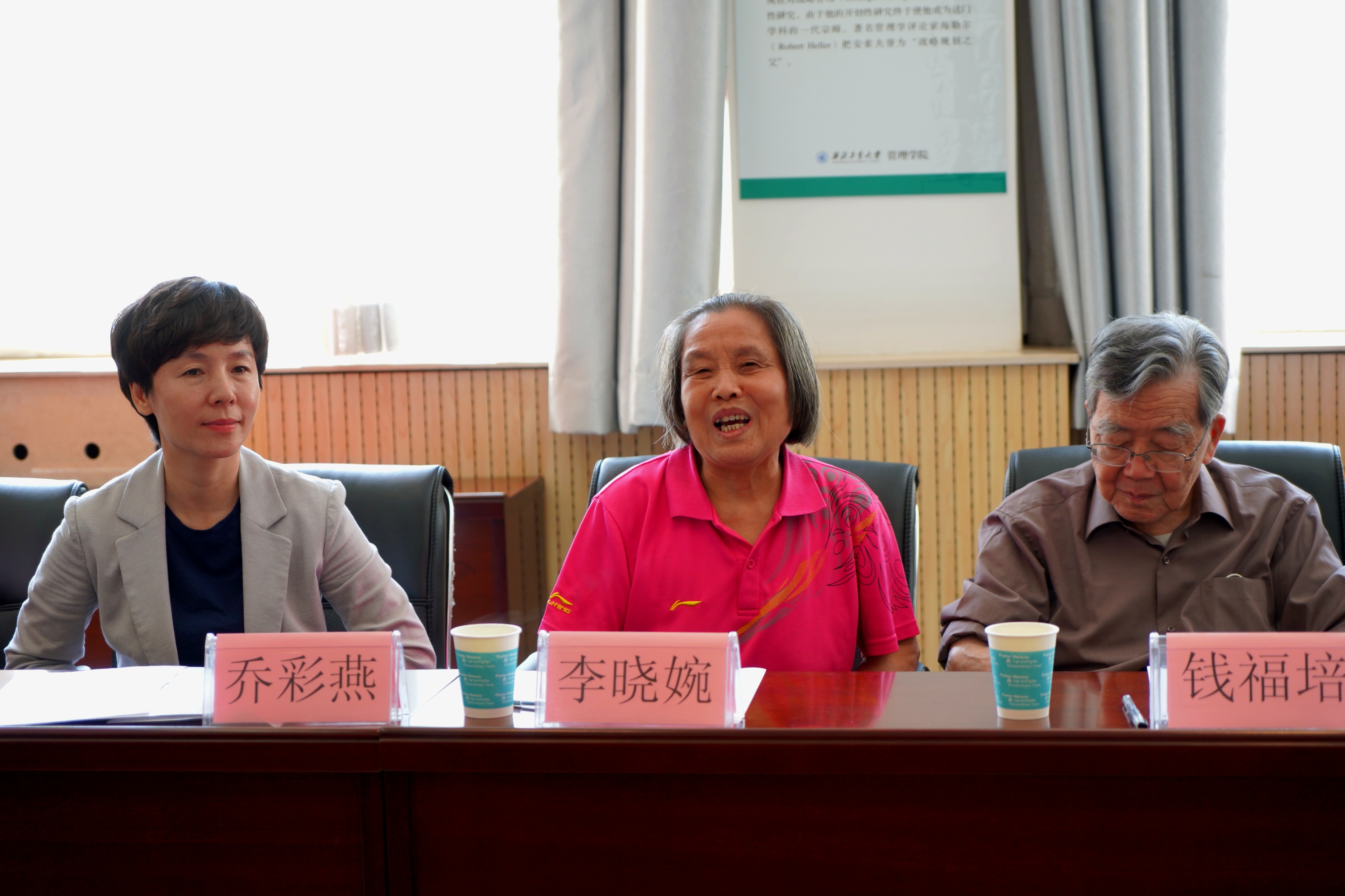 的发展贡献自己的力量;钱福培从自己工作经历讲起,从最早接触项目管理的理念到为扩大项目管理的影响力而努力奔走,钱教授饱含深情地讲述自己为学院学科发展奉献一生的经历;梁三星从“立道德、传知识、强能力”三个方面展开分享,他指出,教师在育人时要有广博的知识、严谨的态度、育人的情怀。而作为工大人更要有为学校、学院增光添彩的真心与责任心;李晓婉结合自己曾经从事的学生工作经历,通过鲜活的故事谈到,学生工作是一项辛苦而又幸福的工作,最重要的是要“以情动人、以情感人”,做事前要心中有数,做事后要及时反思。四位老教师朴实无华但字字珠玑的分享,深深打动折服了在座的每位青年教师,现场掌声频频。