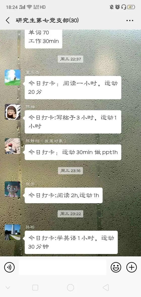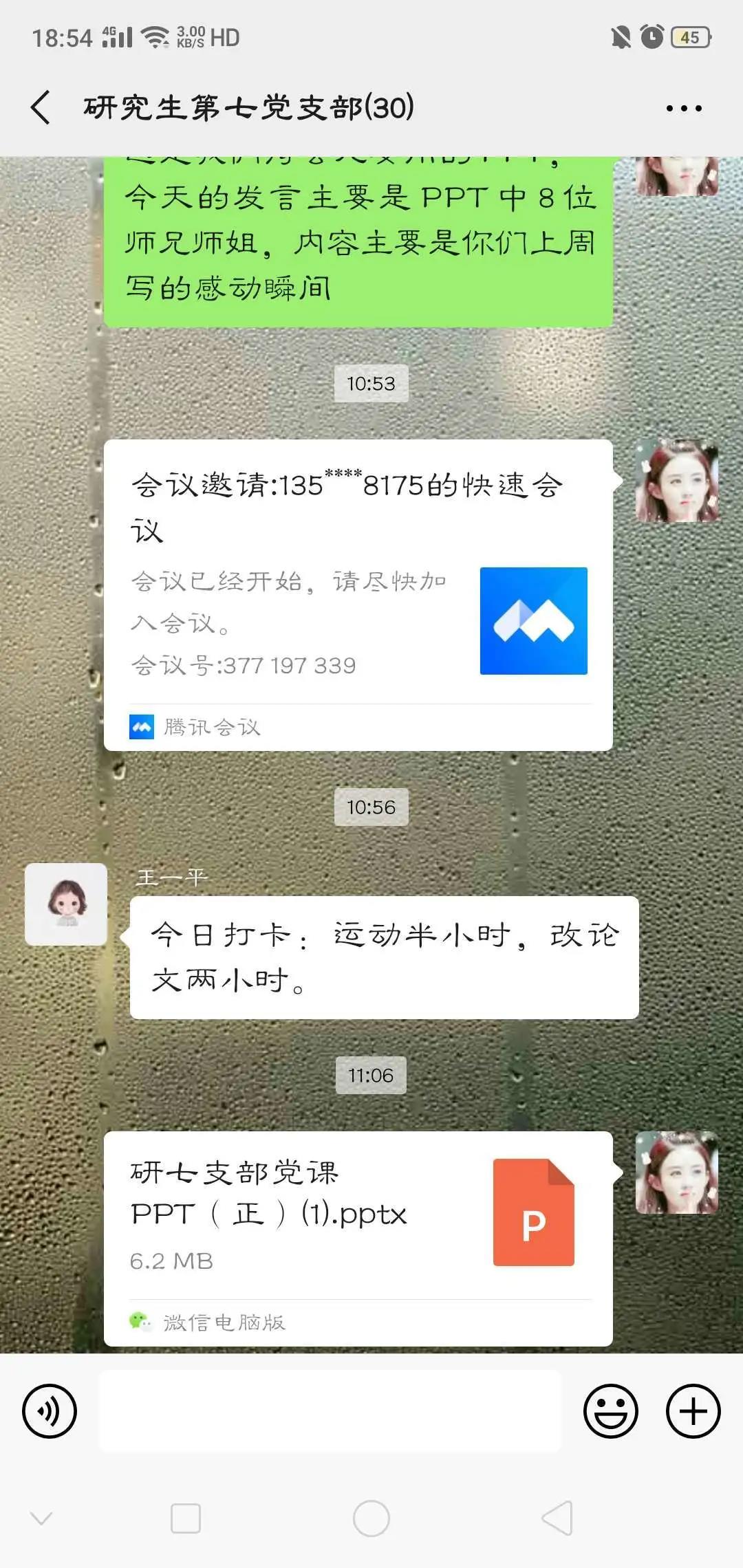 3、线上党课:2020年2月21日上午我们支部开展了线上党课活动,主题是“疫情防控,感动事迹”,主要是选取党员代表围绕疫情期间触动心灵的见闻分享自己的看法。