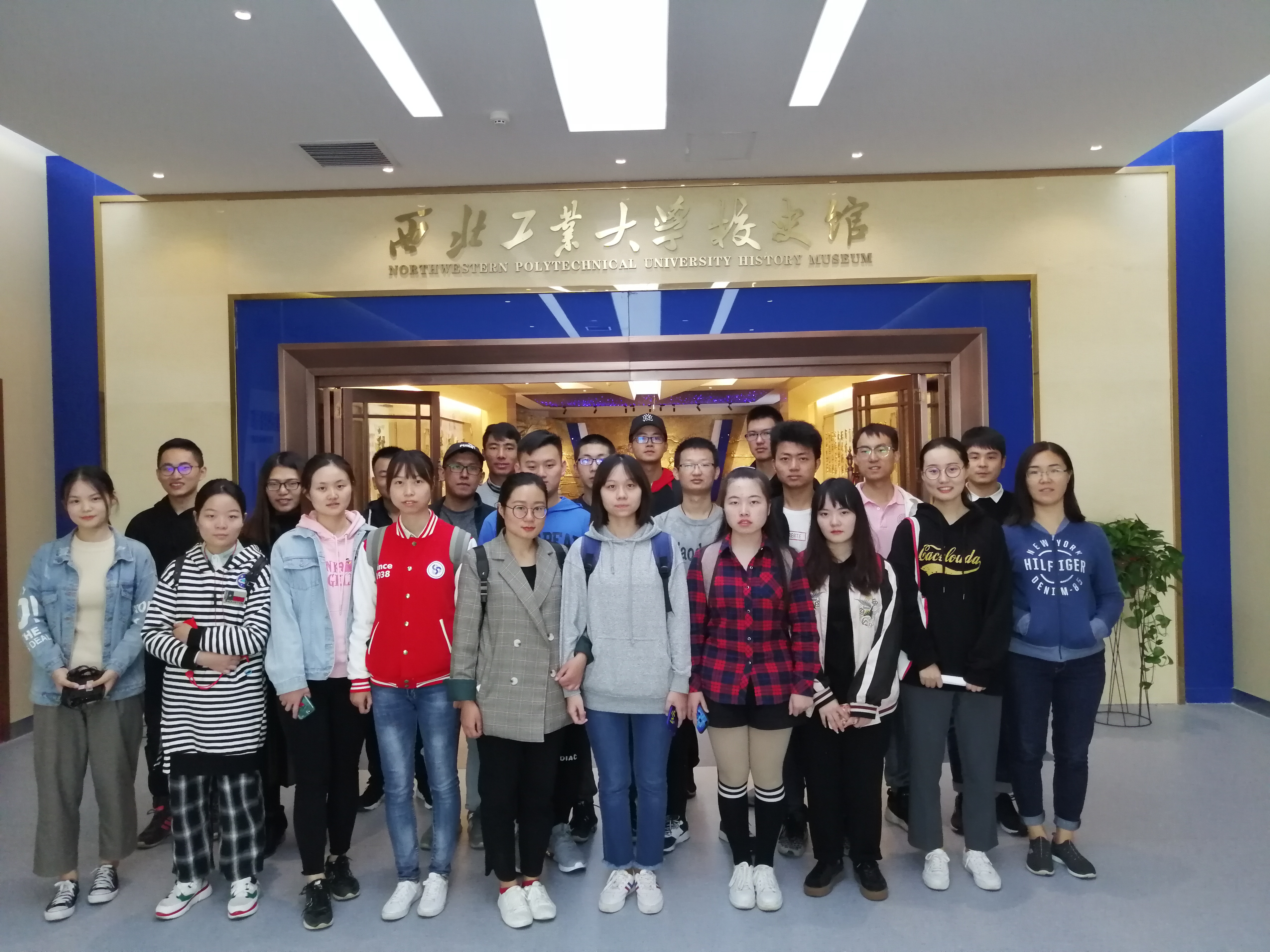 首先,同学们跟随着讲解员进入了校史馆,在校史馆两侧的展墙上清晰地阐释了西工大的脉源三支。在了解了工大的前世今生之后,讲解员又亲切地为同学们讲述了工大校歌的来历、“公诚勇毅”的校训以及“三实一新”的校风。除此之外,展墙上还展出了工大所取得的各项辉煌成就,展台上摆放着工大不同时期的早已泛黄的史料,它们是几代工大人艰苦奋斗、勇于创新最有力的证明。