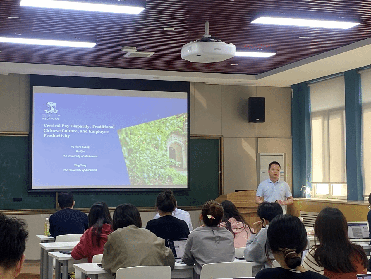 会上,杨星从中国特殊的正式制度背景-“国有企业限薪令”切入,探究了企业纵向薪酬差距(即企业内部高管与普通员工之间的薪酬差距)如何与非正式制度-中国传统文化相互作用,影响企业的员工生产率。结合锦标赛理论和实证分析结果,杨星指出在以高权力距离和竞争求胜主义为特征的传统文化背景下,高管与普通员工之间薪酬比例的突然降低会导致员工生产率的显著下降;此外,当员工受到更多文化传统的影响时,生产率的下降更为明显。讲座最后,杨星总结了研究结论:即在不考虑文化背景的情况下施加薪酬限制会对公司价值产生不利影响。该研究对高管薪酬政策的设计和实施具有重要的现实意义。