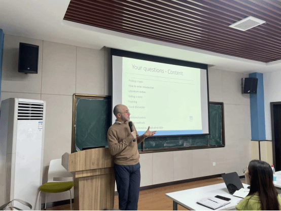 互动环节,Giacomo 耐心回答了参与学生提出的问题,涉及学术写作的各个方面,如数据分析、论文结构的优化等。他的专业见解和实用建议,为参会师生提供了深刻的学术指导。