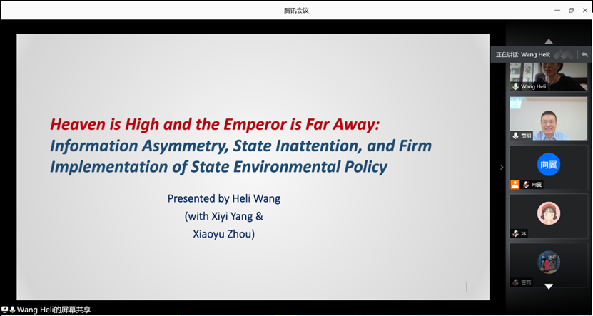 做了题为“Heaven is High and the Emperor is Far Away: Information Asymmetry, State Inattention, and Firm Implementation of State Environmental Policy”的学术报告。本次报告由贾明教授主持,磁力片