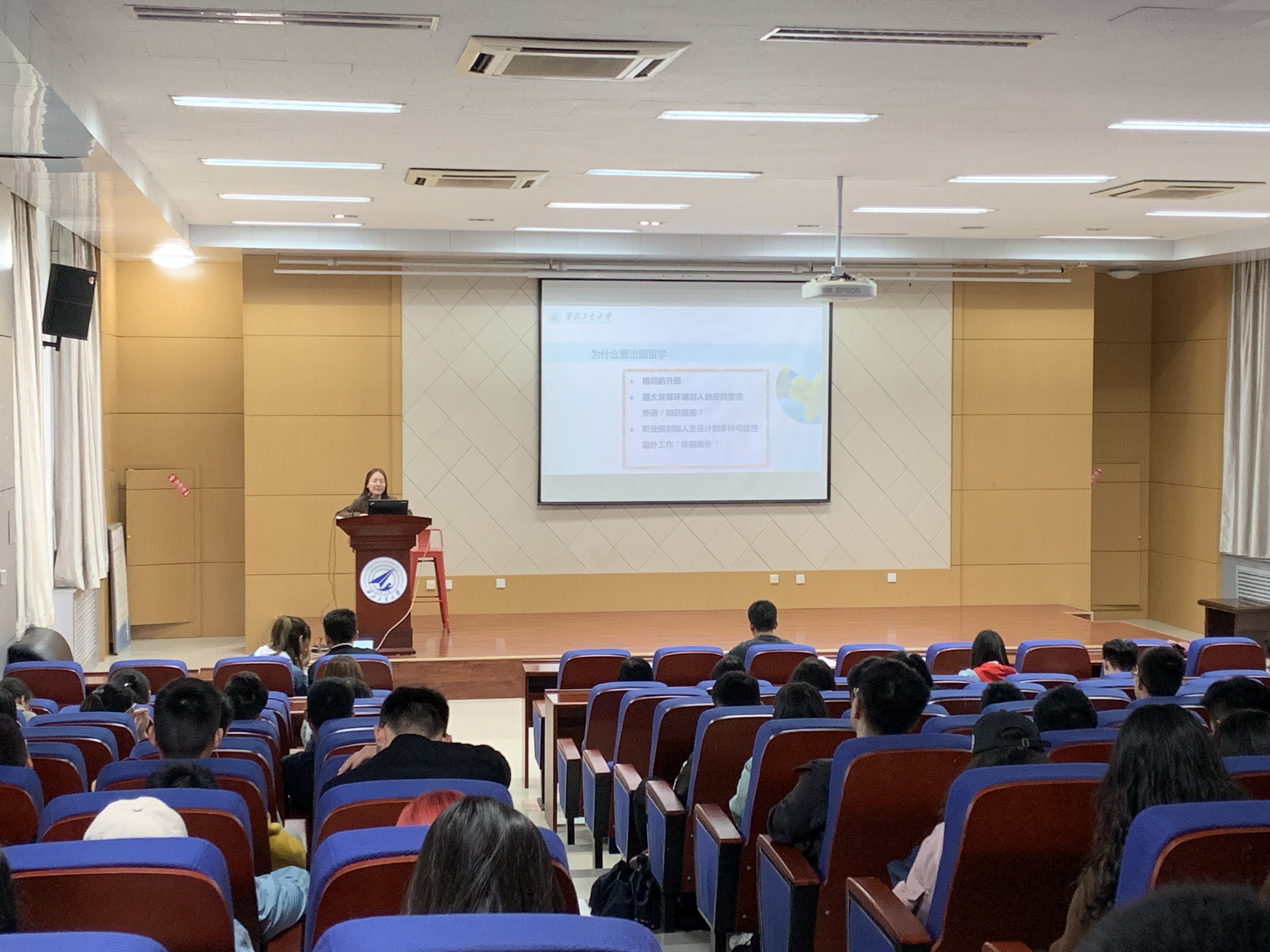 宣贯会最后一个部分,学院外事秘书王霄老师为同学们详细介绍了学院现有的留学交流协议项目以及项目的申请和派出流程。王霄老师也从自身出国留学经历、当前学校难得的资助政策及留、访学经历的积极影响谈起,鼓励在座的同学们能够鼓起勇气走出国门“趁早去看看”。同时,再次在会议现场宣传2019年院级协议项目,并积极号召同学们进行申报。希望同学们在新的航道上放飞梦想,扬帆远航。