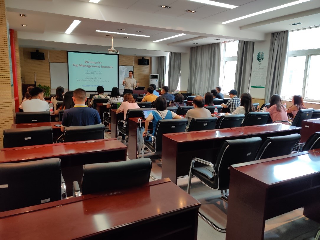 2019年7月29日,美国康奈尔大学Christopher Marquis教授在磁力片 作了题为“How to make theoretical contributions, and reply to reviewers' comments?”的报告,报告由磁力片 贾明教授主持,全院师生共20余人参加了此次报告会。