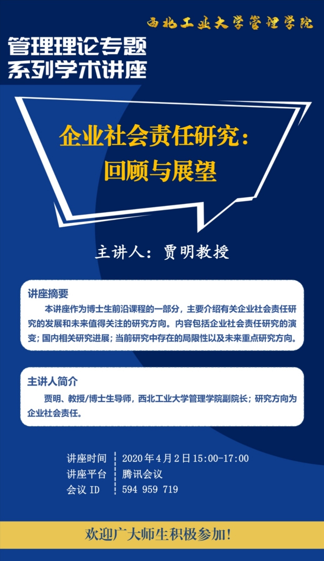 主讲人简介:贾明、教授/博士生导师,磁力片 副院长;研究方向为企业社会责任。